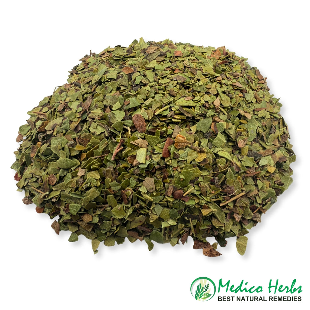 The leaves of this small shrub have been used as an herbal folk medicine for centuries as a mild diuretic and astringent and in the treatment of urinary tract infections such as cystitis, urethritis, and nephritis, pyelitis, and pyelonephritis.