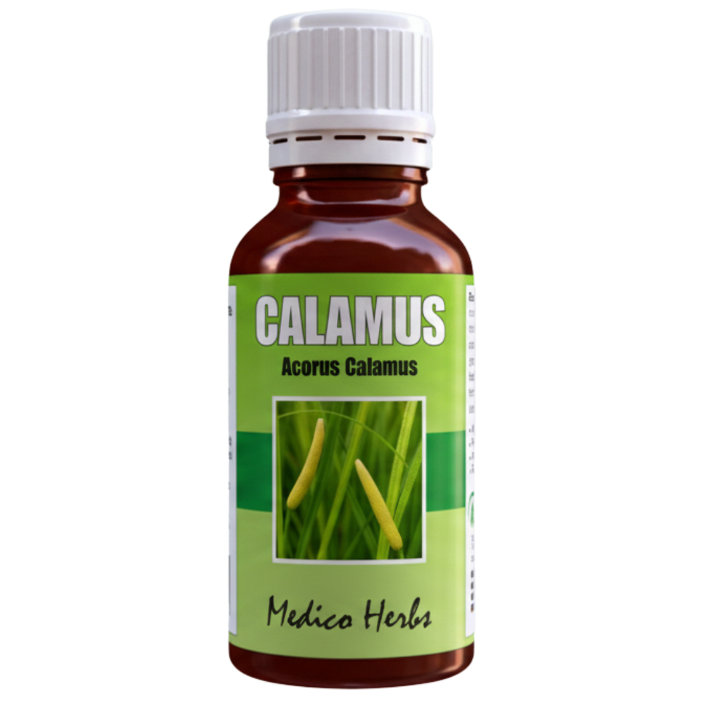 Calamus (sweet flag) is an aromatic, bitter stomachic, which stimulates appetite and digestion and is a stomach tonic. It has spasmolytic, carminative, and sedative effects, in addition to being externally hyperemic. It also a stimulant, emetic, nauseant, stomachic, aromatic, expectorant, carminative, antispasmodic, and nervine sedative.