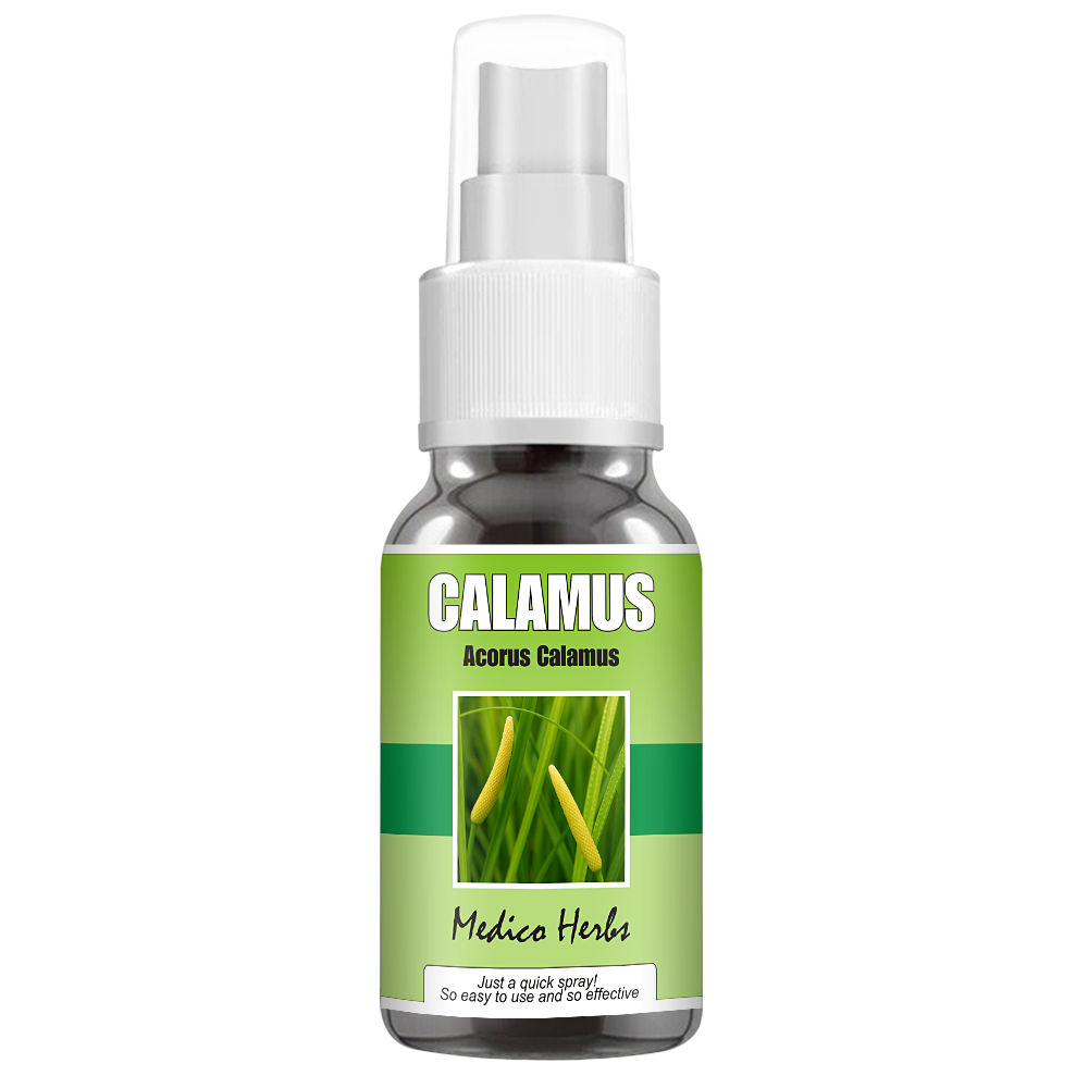 Calamus (sweet flag) is an aromatic, bitter stomachic, which stimulates appetite and digestion and is a stomach tonic. It has spasmolytic, carminative, and sedative effects, in addition to being externally hyperemic. It also a stimulant, emetic, nauseant, stomachic, aromatic, expectorant, carminative, antispasmodic, and nervine sedative.