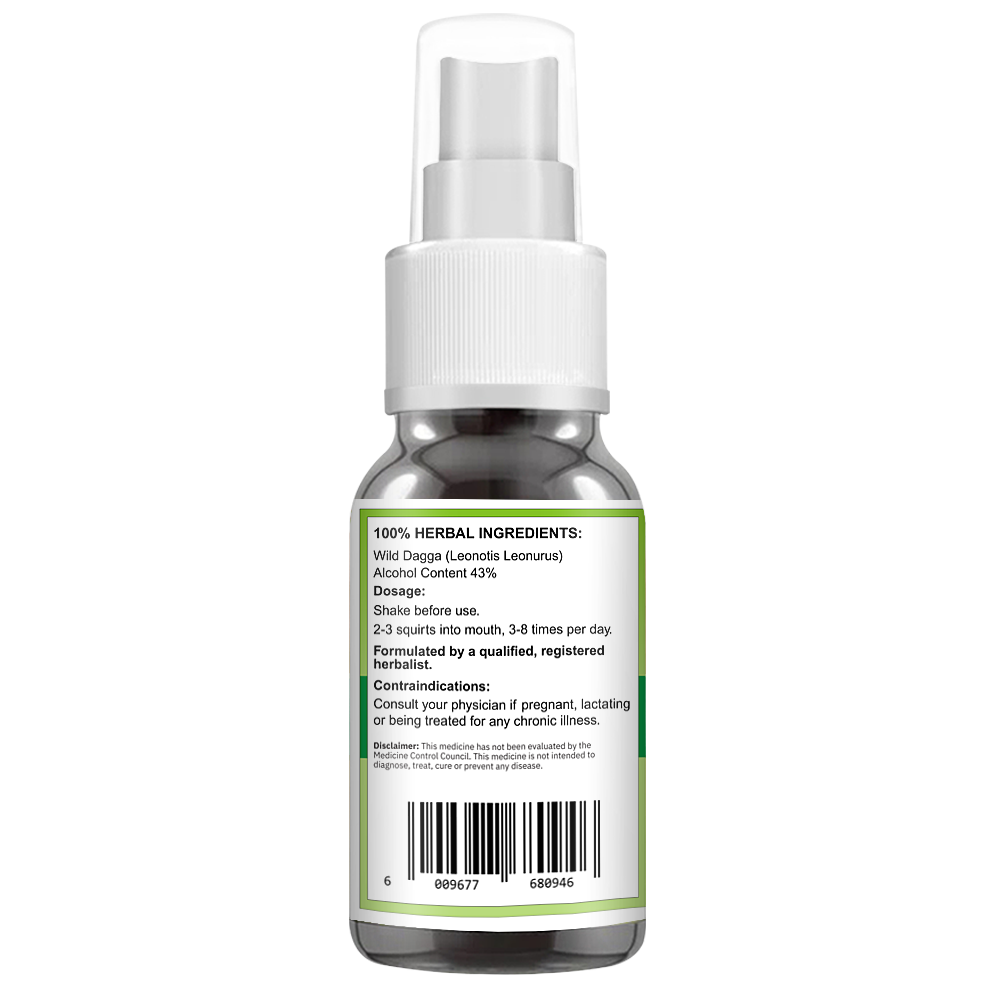 (internal use) Adults: Half a cupful (.90ml) Elderly patients: Quarter of a cupful (.45ml) Children 6-12 yrs: Quarter of a cupful (.45ml) Children 2-6 yrs: Two teaspoonsful (.8ml) To be taken two to three times daily. For external use, the decoction may be applied to the affected area using a clean cloth. References 1. Iwarsson, M. (1985). Leonotis, in Flora of Southern Africa 28,4: 31-37. Botanical Research Institute, Pretoria