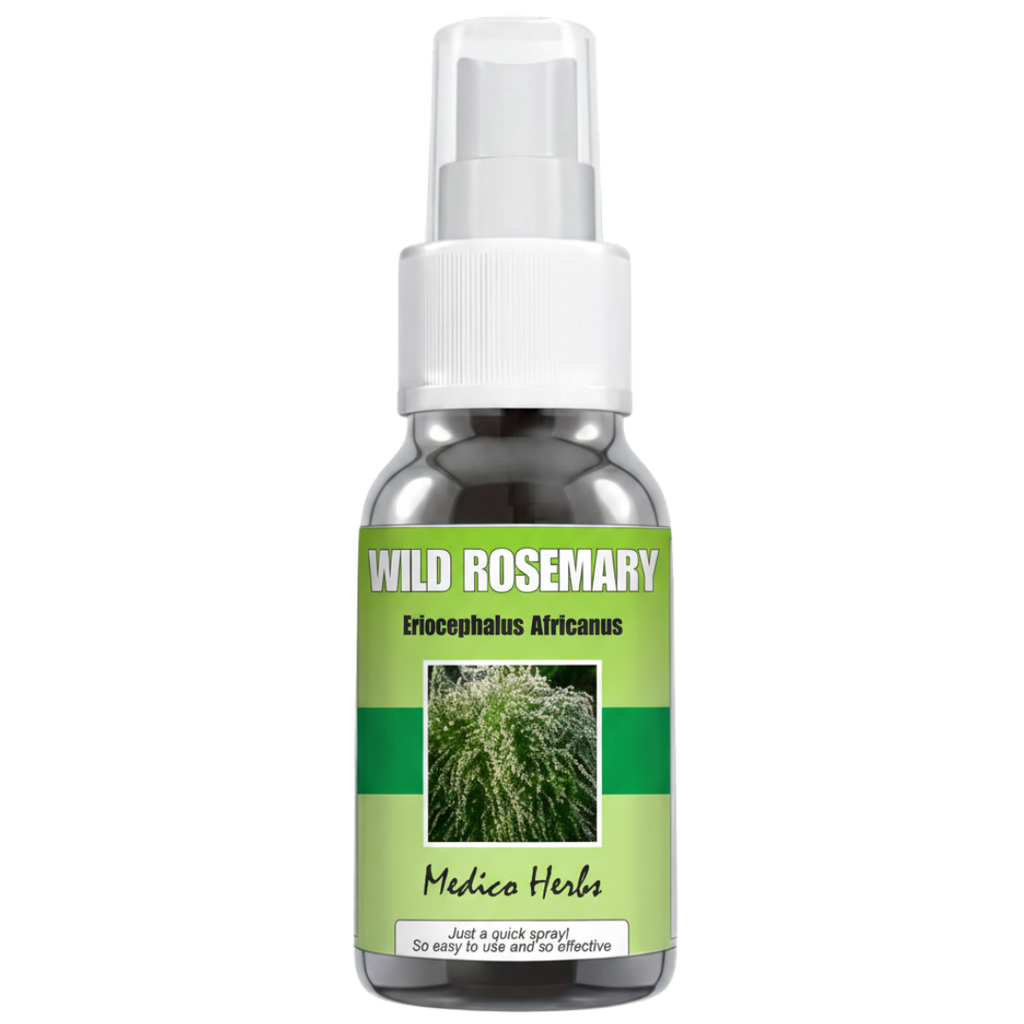 Wild Rosemary stimulates circulation and improves blood flow. Used to treat dyspepsia, stomach cramps, bloating, constipation, respiratory infections, headache, poor concentration, fatigue, rheumatism, bronchial, ear, nose, and throat infections, and muscle aches.